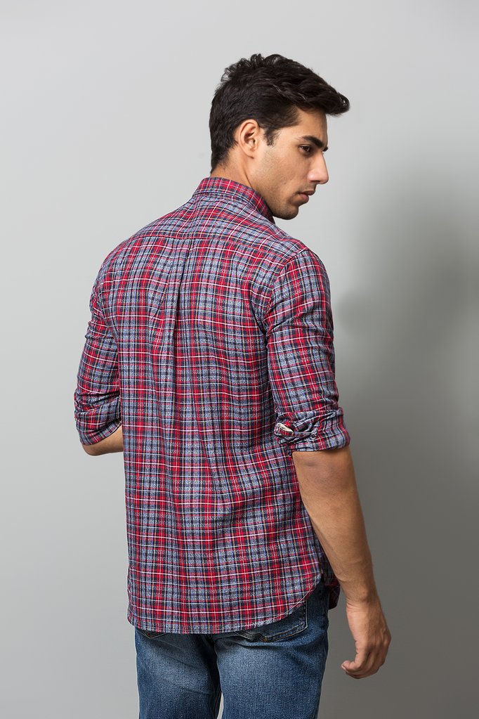 Full sleeves, slim fit shirt with a classic point collar, a Check Print and button fastening makes it an essential piece for one's wardrobe.